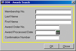 You can search for a member's award information in five ways: