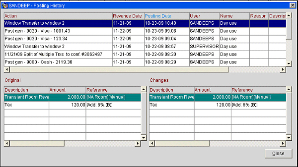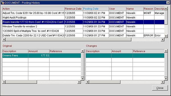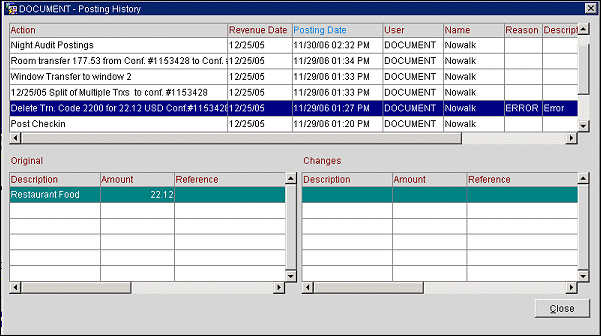 Only transactions that involve a modification to pre-existing posting action will display information in both the Original and the Changes grids. Transactions that never involved a change (such as posting a payment) appear only in the Changes grid without a corresponding Original grid entry.