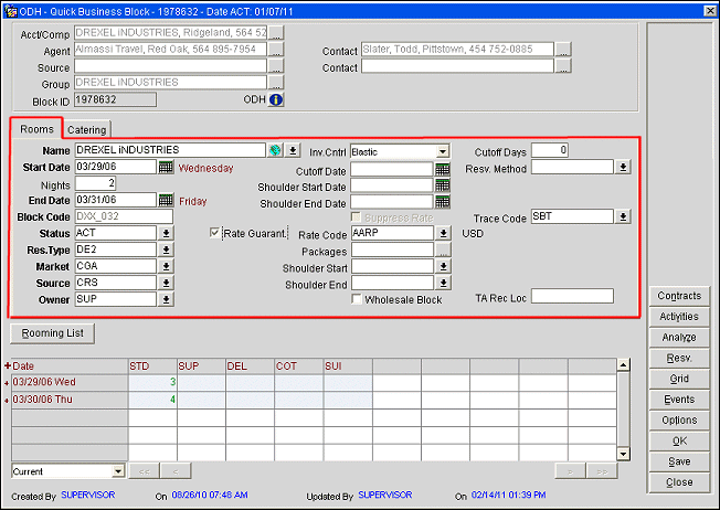 The business block function is a powerful way to handle groups and other room allotments. Business blocks can be used for handling regular groups, travel agents allotments, tour series and convention bookings as well.